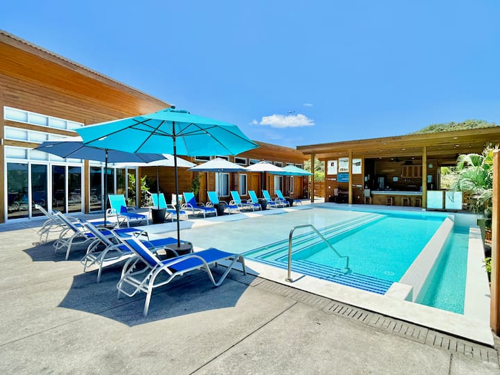Sumérjase en la tranquilidad de nuestra piscina infinity, que utiliza agua salada sin químicos (sin sensación a agua salada). Perfecta para un baño revitalizante por la mañana o para relajarse bajo el cálido sol tropical por la tarde—disponible para el uso de todos los huéspedes.