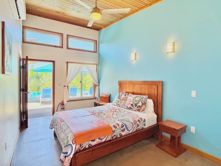 Encantadora villa con piscina compartida. Amplio terreno rodeado de árboles, flores vibrantes y los relajantes sonidos de la naturaleza. A solo 5 min. en auto de la playa!