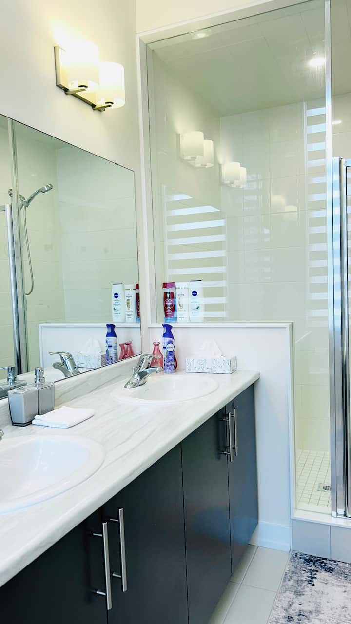 Habitación con baño y cama tamaño king - Elegante - Nueva - Casa adosada compartida