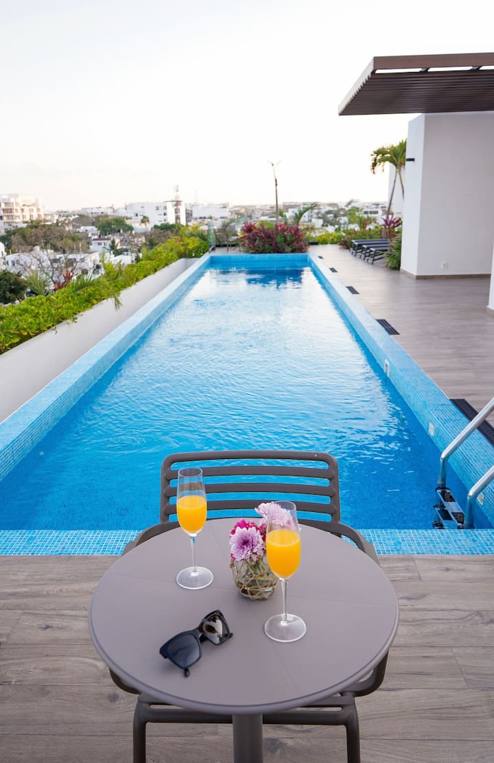 Hermoso estudio en Sensai Downtown / piscina en la azotea