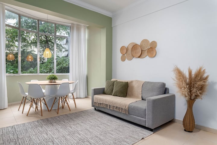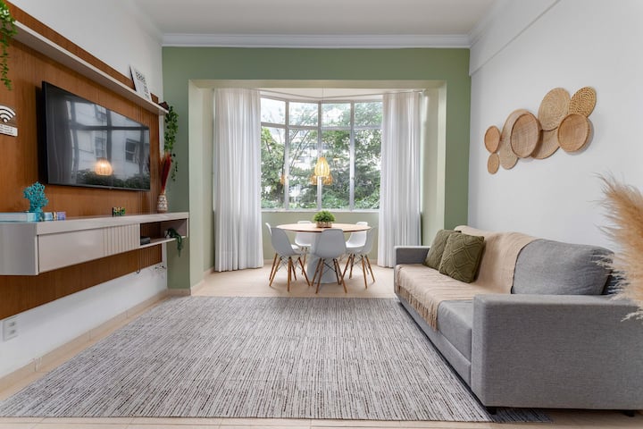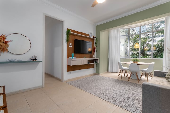 Caminata a la playa de Copacabana, 3 dormitorios, aire acondicionado, wifi y comodidad.