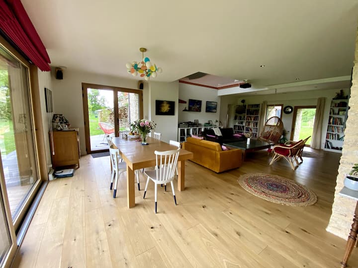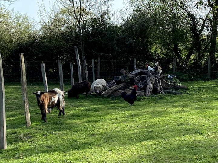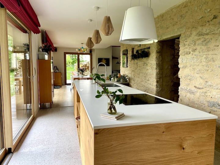 Después de 10 años en París, huimos de la ciudad y nos fuimos a medio de la nada (pero cerca de todo;)). Ya 13 años y es genial, nos encanta, revivimos. Después de una primera casa (alquilada en Airbnb todos los veranos y hermosos encuentros), reiteramos con nuestra nueva casa, construida para consumir la menor cantidad de energía posible, sobre las ruinas de una antigua granja. ¡Estamos ansiosos por mostrarle... y dejar que disfrute!