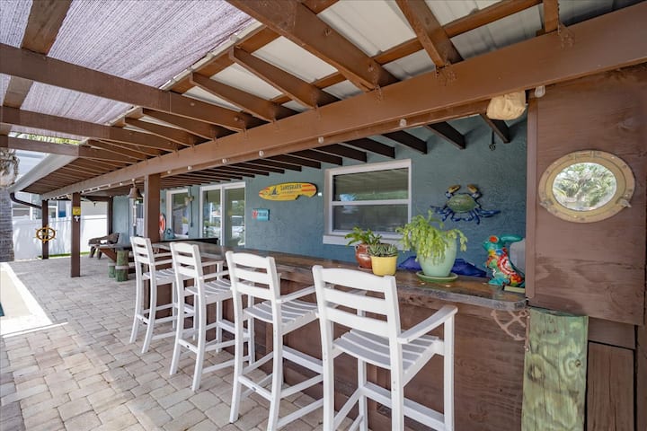 Retiro frente al mar de 3 dormitorios con piscina, bar tiki y bote