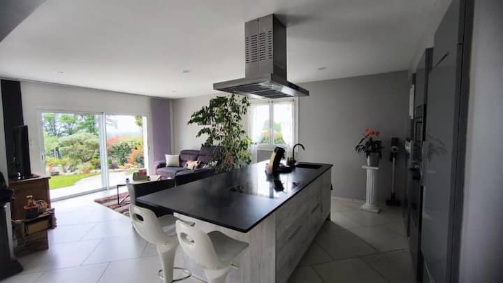 Bienvenido a esta luminosa y cálida casa situada en Buros, a solo unos minutos de Pau, del Zénith (7 km) y del Palais Beaumont (9,2 km). Diseñada para recargar las pilas con total tranquilidad, esta casa independiente ofrece un ambiente tranquilo, con piscina compartida*, terraza soleada y vistas despejadas a los Pirineos.