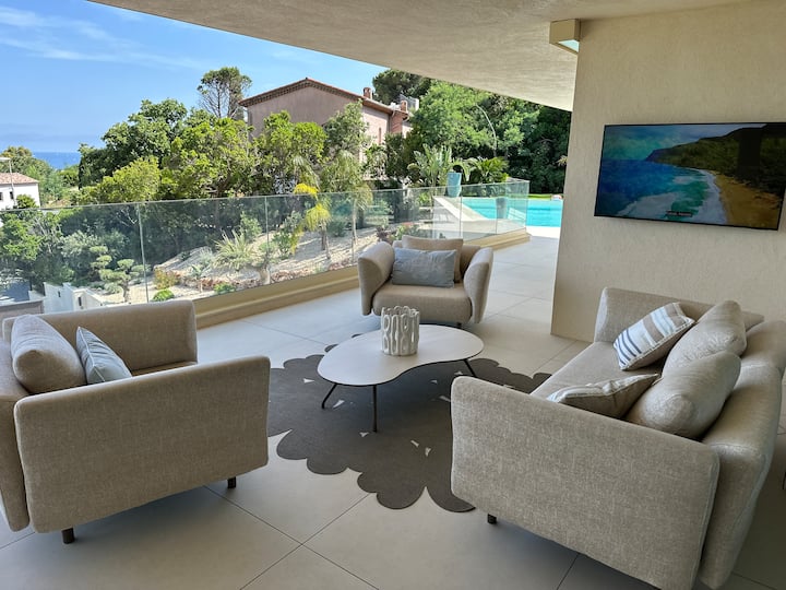Villa Les Issambres, piscina infinita, vista al mar