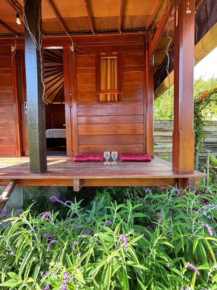 Casa de madera en medio de una plantación