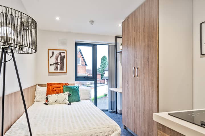 Entra en este luminoso y elegante estudio que se siente como en casa desde el momento en que llegas. Perfecto para viajeros solos, parejas, trabajadores remotos o estudiantes, está totalmente equipado para visitas cortas o estancias prolongadas. Ubicado en el centro, a pocos minutos de las principales atracciones, restaurantes, tiendas y conexiones de transporte de Wolverhampton.