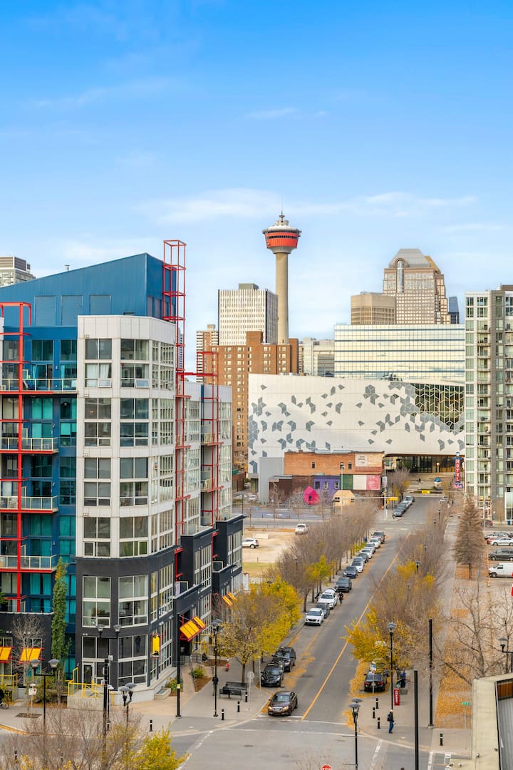 5 min a Stampede | 2BR | AC | Estacionamiento UG