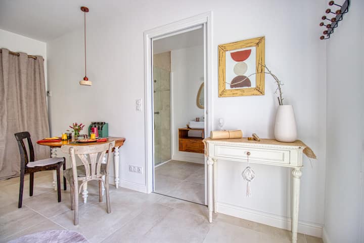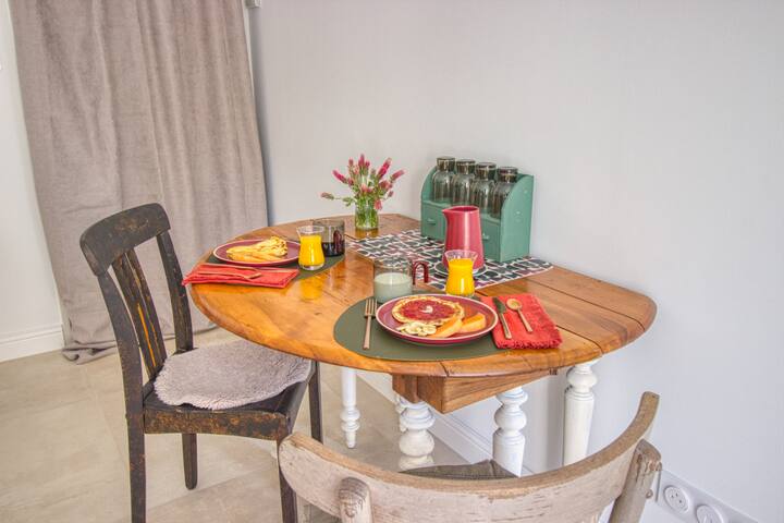 ¡Hola, soy Mélie! Apasionada por el diseño de interiores y la naturaleza, imaginé L'Orée du Bois como un lugar vivo e inspirador. Algunos objetos decorativos presentes en la habitación también están disponibles para la venta para prolongar la experiencia en su hogar.