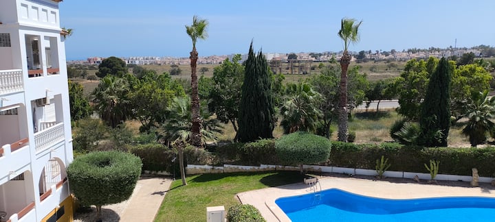 Apartamento de 2 dormitorios orientado al sur con vistas a la piscina en Villamartín