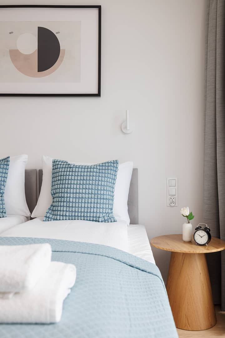 Los apartamentos Compact II C son elegantes y cómodos, con una superficie de 21 m2, y tienen capacidad para 2 personas. Es una opción ideal para parejas que viajan o para viajes de negocios. El espacio en sí ha sido diseñado pensando en la comodidad y la funcionalidad, y el interior es moderno y elegante, decorado con atención al detalle.