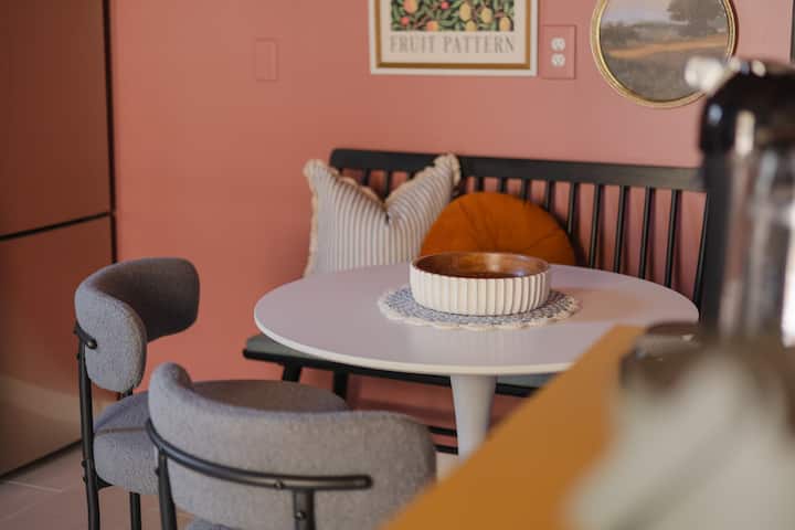 Inspirándose en sus viajes por el mundo, su vida familiar y sus carreras, han creado una estancia interactiva que refleja sus experiencias únicas y su atención al detalle. Sasha, propietaria de una empresa de home staging y diseñadora de interiores que aparece en Rock Solid Builds de HGTV, aporta su atención al detalle y su creatividad a cada rincón. Justin, un agente inmobiliario experimentado, aporta una década de experiencia ayudando a las familias a encontrar sus hogares perfectos.