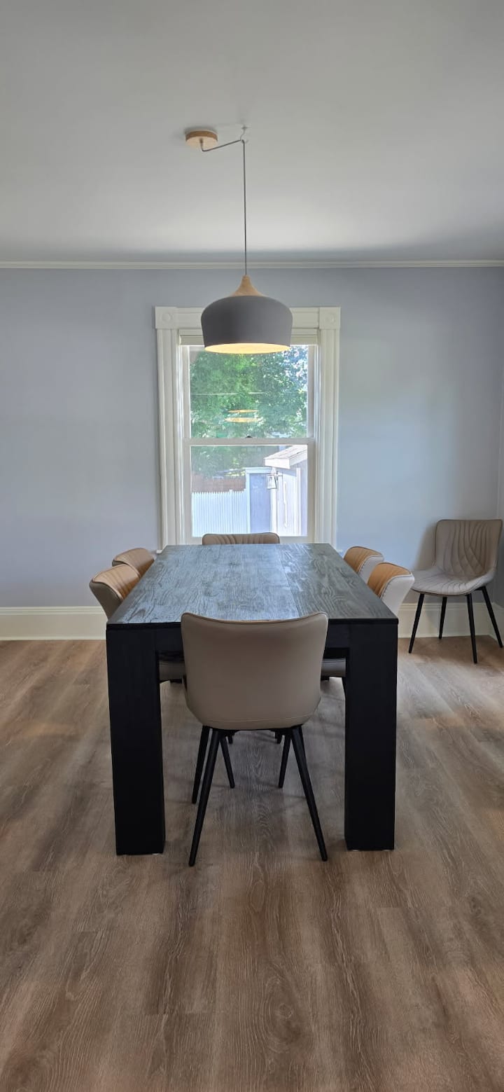 Construida originalmente en la década de 1920 y renovada con cariño, esta casa de 3 dormitorios ofrece una mezcla perfecta de carácter y comodidad moderna. Pero quizás su mayor atractivo es la ubicación: sal por la puerta y te encontrarás a pocas manzanas de la calle principal arbolada, restaurantes galardonados, tiendas independientes, cafés acogedores, sitios históricos y senderos naturales. Tanto si está planeando un fin de semana romántico, unas vacaciones familiares o una escapada en grupo, Keene está lleno de descubrimientos, y su estancia en 12 Leverett hace que explorar sea fácil.