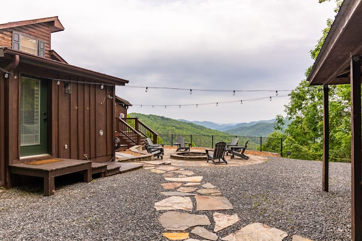 Hay un enorme fogón de piedra en el suelo rodeado de sillas Adirondack, y fuera del área de estacionamiento hay un cobertizo de juegos con un columpio exterior frente a las hermosas vistas a la montaña, un tablero de dardos y juegos al aire libre que incluyen herraduras, cornhole y bola de escalera. Disfruta de una comida al aire libre con la parrilla de carbón. Relájate y disfruta de las grandes vistas desde el jacuzzi también.
