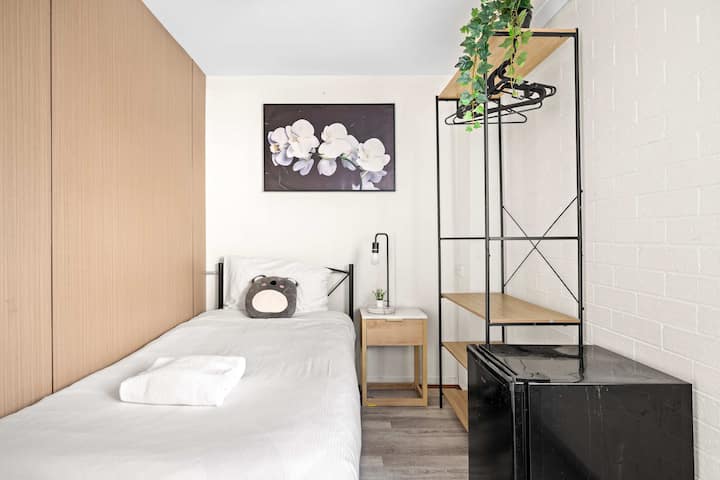 Tu habitación privada con cama individual está cuidadosamente amueblada para garantizar una estancia cómoda. Capacidad para 1 persona.