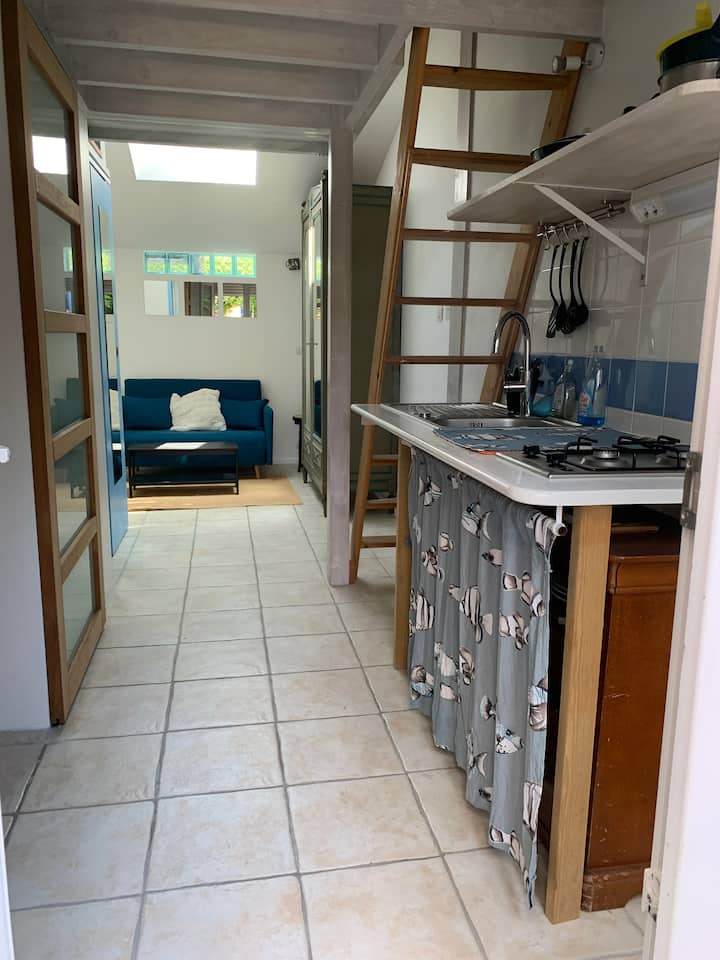 Encantador estudio dúplex, patio privado con hojas