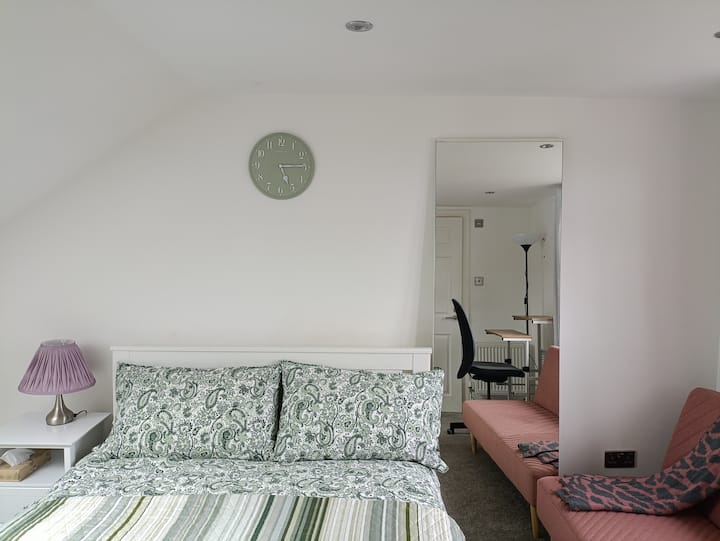 Hermoso loft con cama doble + baño privado + aparcamiento gratuito