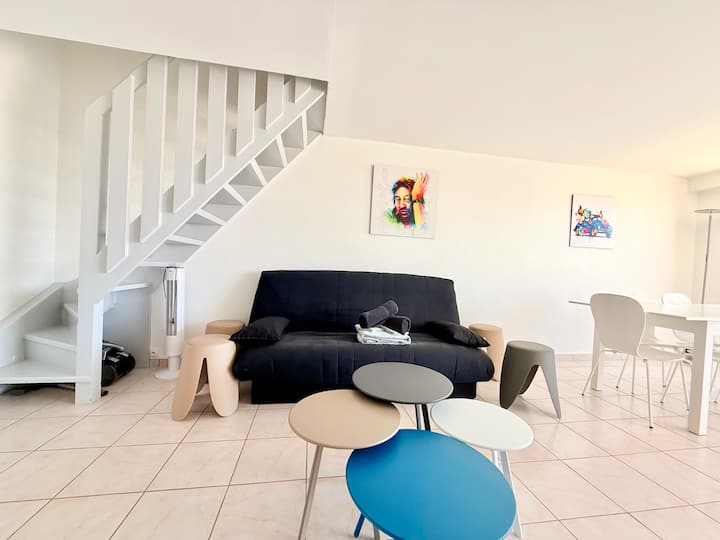 Luminoso y espacioso dúplex T4 con capacidad para 9 personas en la residencia «Agde Marine 1» en el corazón de Cap d'Agde, cerca de los muelles del centro portuario, el Palacio de Congresos, el Casino y las playas.