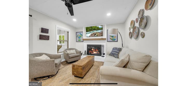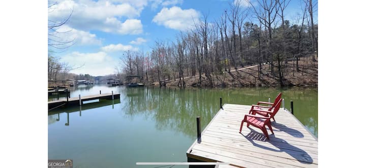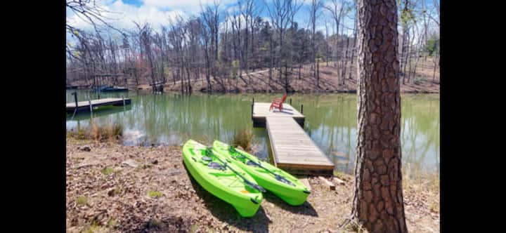 Relájate en este espacio tranquilo y elegante en una cala tranquila con muelle, fogata, kayaks con chalecos salvavidas y juguetes para el lago, y ping pong. Cocina totalmente equipada, chimenea interior, múltiples espacios de estar y mucho más, todo a solo 1 minuto a pie a través de un camino bordeado de árboles hasta el muelle frente al mar.
