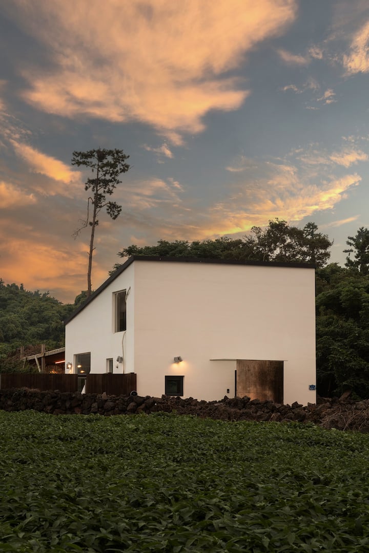 «Seonunrim» es un alojamiento privado y exclusivo situado al final del pueblo más tranquilo de Hallim, al oeste de Jeju. Si caminas por el muro bajo de piedra, esta casa, que aparece entre el viento y el sol,