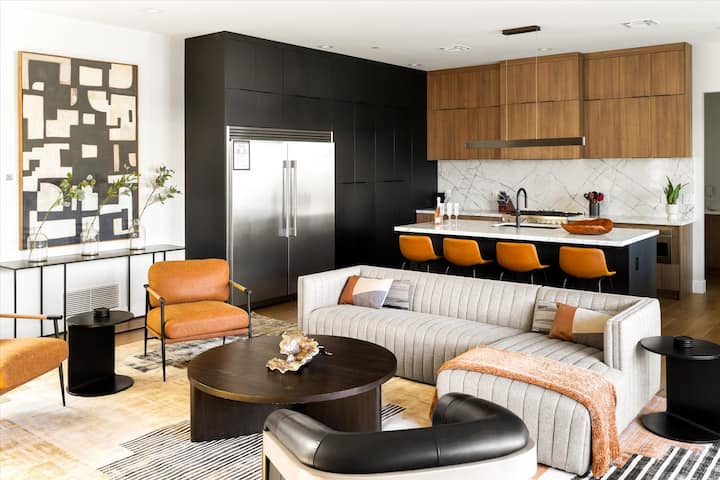2 suites principales con camas tamaño king, cargador EV, gimnasio, patio con asientos y comedor, barbacoa