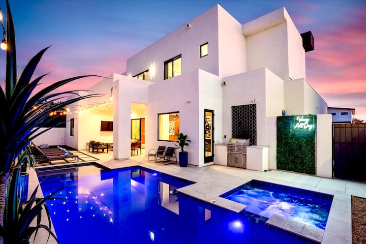 Diseño desértico contemporáneo, piscina climatizada y spa*, TV en el patio
