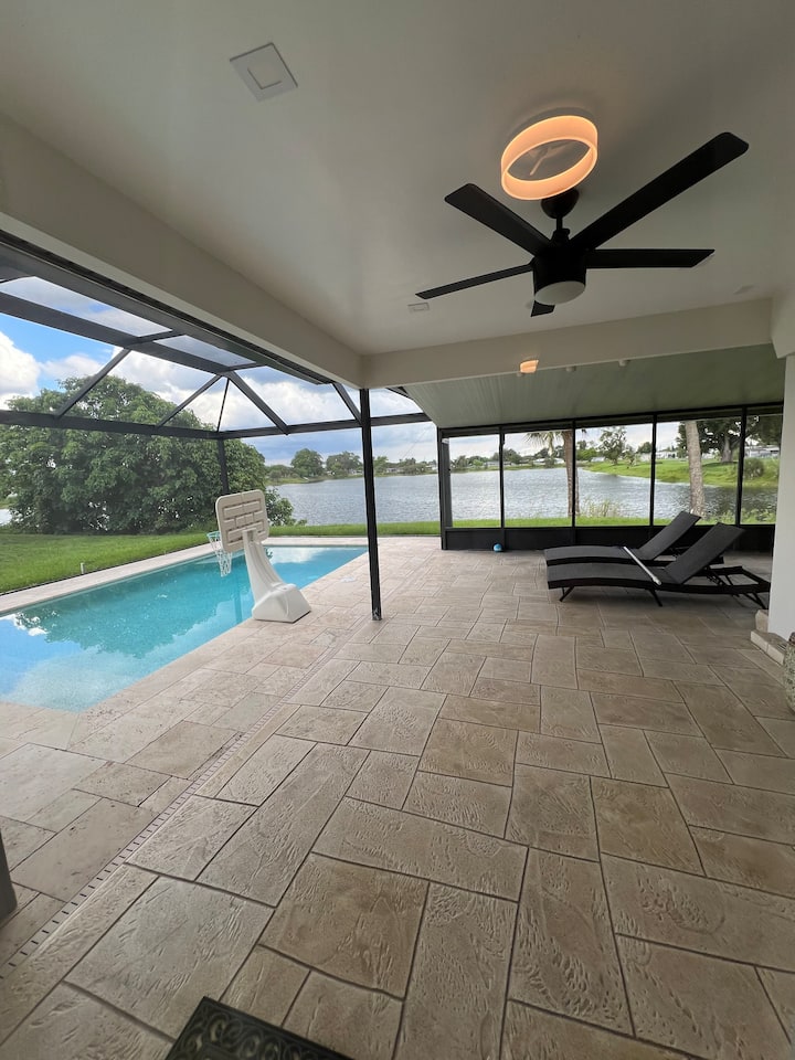 Piscina, casa en el lago.