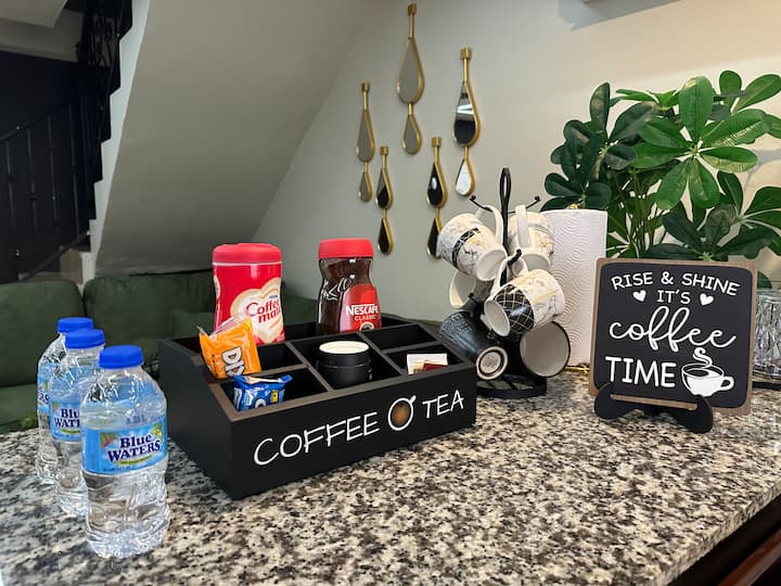 Al entrar en este elegante departamento recién renovado diseñado pensando en tu comodidad y conveniencia, te recibirá una acogedora sala de estar con una pared decorativa con paneles de madera, modernas luces LED en el techo y un televisor LED inteligente de 55 pulgadas. Tendrás acceso a una cocina totalmente equipada con una nevera de tamaño completo y una estufa de gas completamente nuevas. Encontrarás todos los accesorios de cocina necesarios, como prensa de panini/tostadora, microondas, hervidor, tazones, ollas y sartenes. Para que tu visita sea aún más especial, disfruta y saborea nuestros artículos en tu cafetería. La mesa del comedor está preparada para 6 personas, pero puede acomodar a algunas más según los asientos tipo banco.
