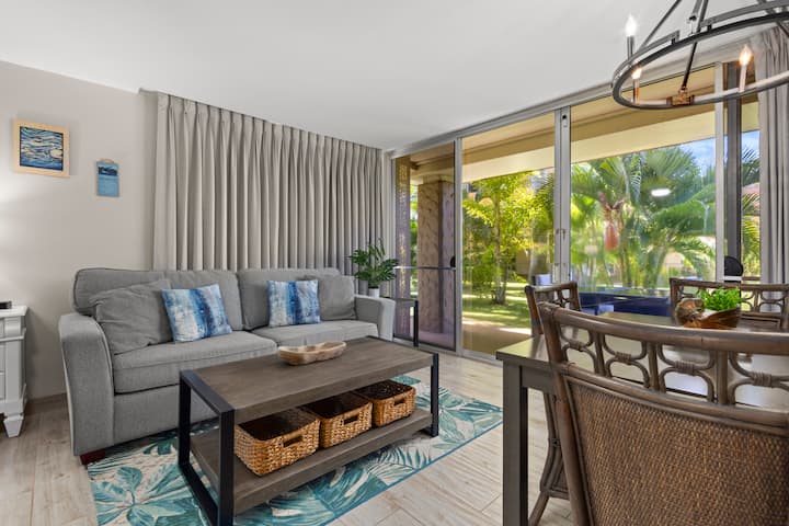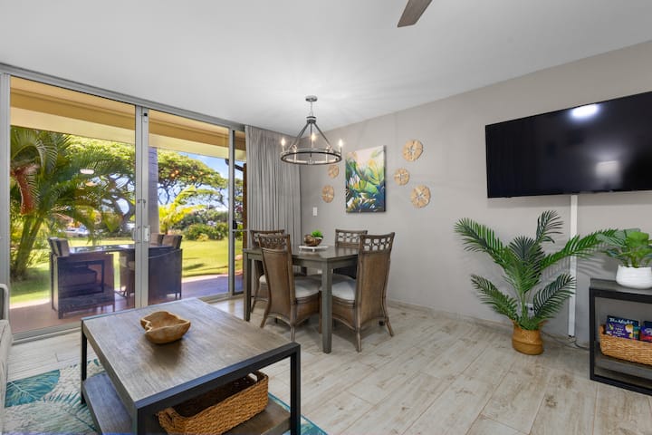 Este apartamento recientemente remodelado se encuentra en la planta baja, lo que permite un acceso rápido y fácil a la piscina. Este lujoso estudio está amueblado con una cama tamaño king y un sofá cama tamaño queen, lo que permite alojar hasta dos personas. Disfruta de la cocina y el baño totalmente equipados, junto con muebles tropicales y detalles personalizados. Disfruta del aire acondicionado central o abre las puertas para que entre la fresca brisa de Maui. Esta unidad seguramente será todo lo que necesita para una vida fácil en la isla.