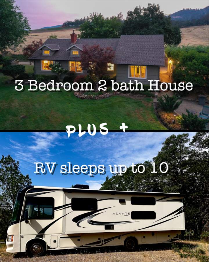 La casa tiene capacidad para 6-8 personas en 3 dormitorios, 2 baños. Hay camas adicionales disponibles en la autocaravana de 2019, de 33 pies, en la propiedad. Consulta los detalles de la disposición para dormir en la parte inferior de esta sección.