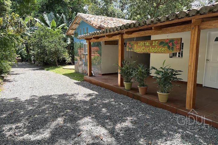 Cómodo dormitorio en una granja de café en el lago de Coatepeque