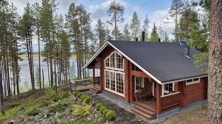 Disfruta de una auténtica experiencia en Laponia y de una paz total en esta exquisita cabaña de troncos, situada en su propia península privada junto al río Kemijoki. Las grandes ventanas panorámicas aportan una impresionante vista al río a la experiencia. Relájate en el suave vapor de una sauna de madera tradicional y date un chapuzón desde tu propio muelle. También tendrás acceso a un bote de remos y a una tabla de paddleboard. Esta casa combina de forma única el silencio de la naturaleza con la proximidad de los servicios de Rovaniemi (a solo 25 minutos). ¡Bienvenido!