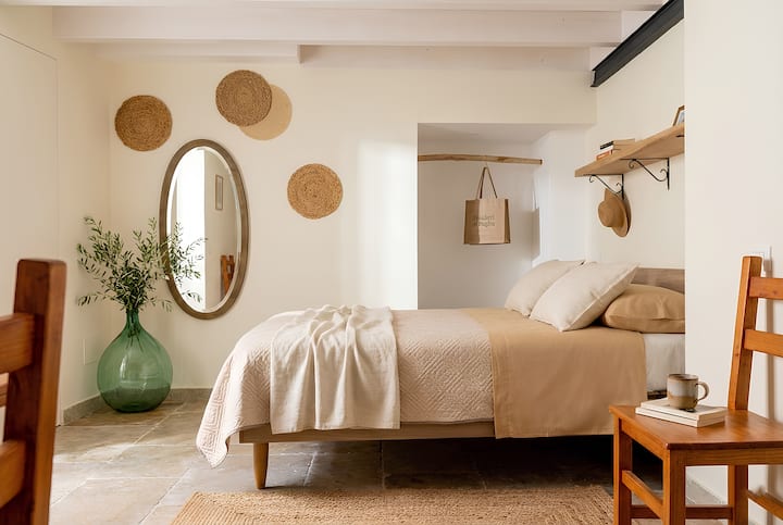 Descubre nuestra habitación más auténtica: piedra viva, arcos antiguos y detalles rústicos que cuentan la historia de la Apulia del pasado. Un refugio íntimo y acogedor, donde la luz cálida y los tejidos naturales crean una atmósfera de relajación y sencillez. A pocos pasos del centro histórico y del mar de Barletta, ideal para aquellos que buscan una estancia tranquila, lejos del caos y cerca del verdadero alma del sur.