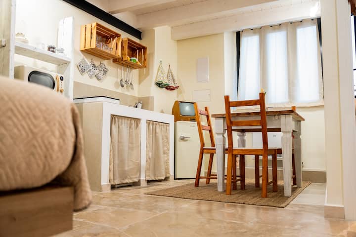 Estudio histórico en el auténtico corazón de Barletta, donde las antiguas paredes de tufo respiran siglos, el castillo de Suabia espera a 3 minutos y el wifi rápido te conecta con el mundo cuando lo deseas. Su santuario para viajar lentamente por Apulia.
