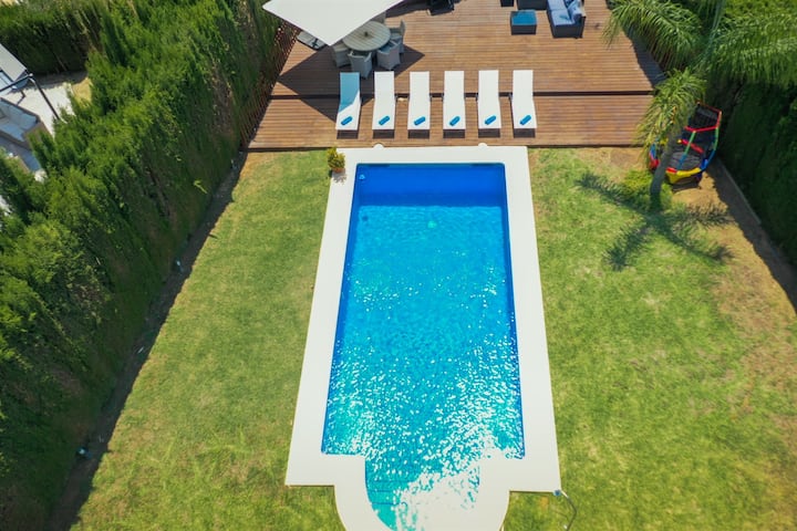 Piscina climatizada, bicicletas, juegos y barbacoa
