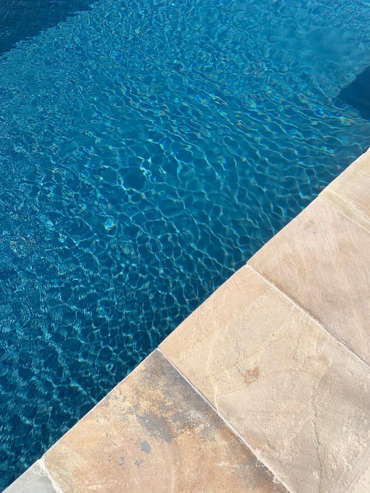 El segundo patio exterior está situado cerca del jardín. Este espacio está en conexión directa con el solárium de la piscina y se construyó sobre la idea del hortus conclusus. Es decir, intenta crear una pequeña zona del campo más íntima, circunscrita, cerrada, donde puedas almorzar, sentarte o admirar el paisaje.
