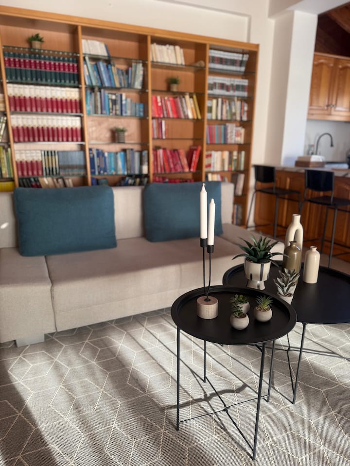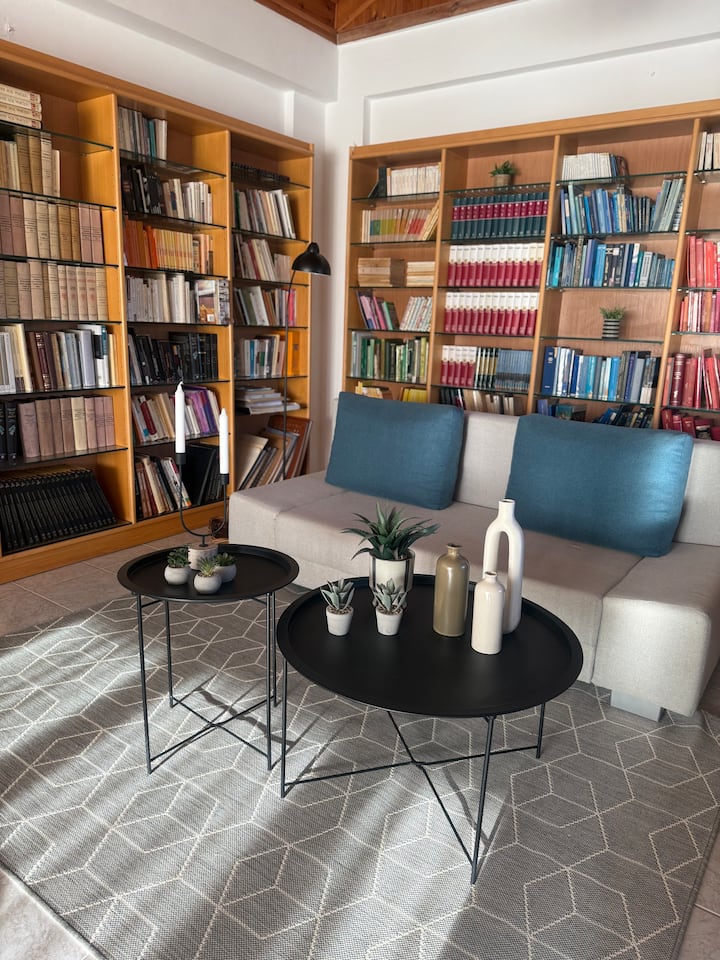 Acogedora estancia en la biblioteca con vistas