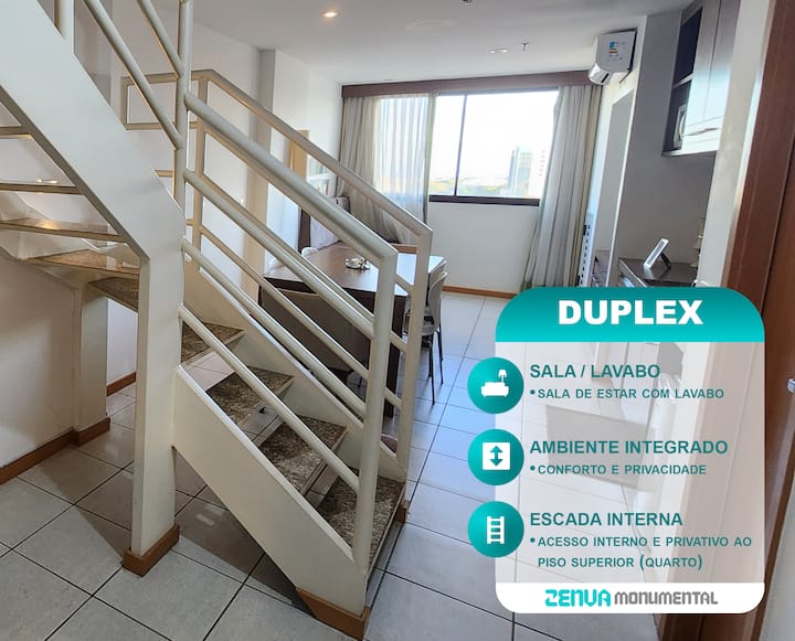 Dúplex de lujo ubicado en el Apart Hotel Nobile Suites Monumental en el centro de Brasilia, frente al Eje Monumental, ideal para quienes buscan practicidad, comodidad y modernidad.