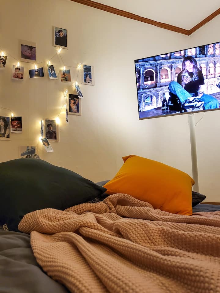 💗 La «Hallyu Room» combina la ola coreana y los viajes: diseñada para aquellos que descubrieron Corea a través del K-POP y el K-DRAMA, esta habitación está llena de toques inspirados en la Hallyu. Termina el día relajándote en la cama y viendo tus contenidos coreanos favoritos.