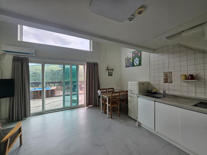Prohibimos cocinar cerdo, pescado y cheonggukjang en la habitación para tener en cuenta a otros huéspedes debido al fuego y el olor, así que utiliza el lugar designado al aire libre y el área de barbacoa.