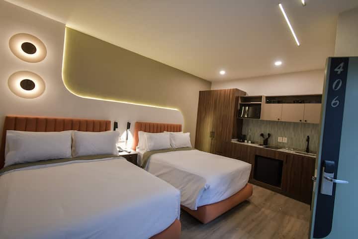 Zona Expo-habitacion privada con 2 camas y cocina