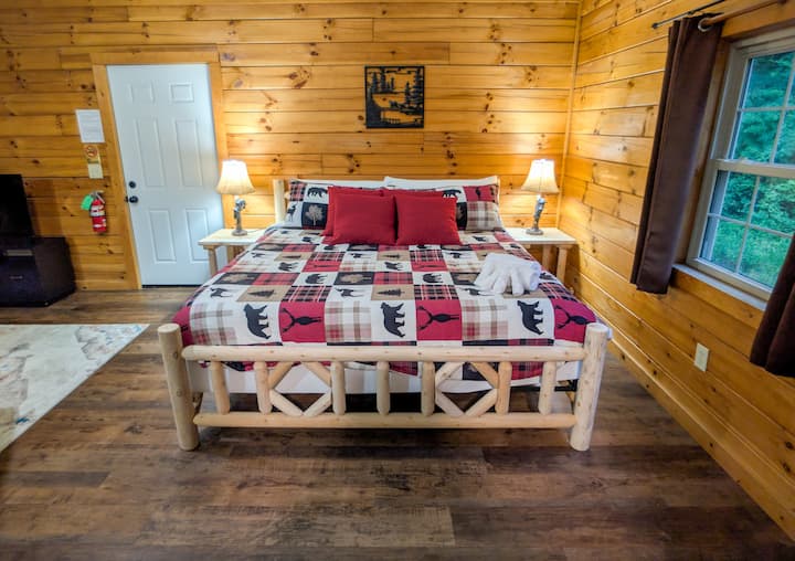 Acogedora cabaña de madera para 2 | Bañera de hidromasaje + parrilla para barbacoa | King