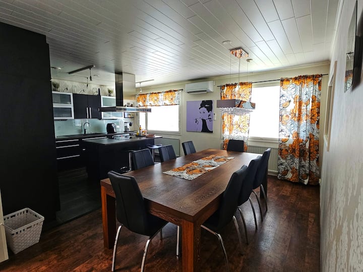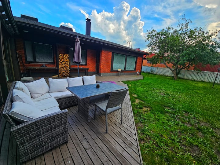 Casa independiente grande, de alta calidad y lujosamente equipada de un nivel de 250 m2 en una buena ubicación tranquila. La casa tiene 4 bombas de calor de aire, por lo que la temperatura adecuada está disponible. Equipamiento realmente completo, 6 dormitorios separados, uno de los cuales es un apartamento separado en su propia paz. Un gimnasio y una gran terraza acristalada, así como una sala con chimenea, aportan lujo a la vida. Punto de carga para coches eléctricos y mascotas permitidas con cargo adicional.