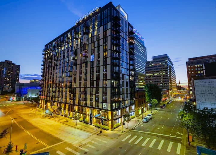 ¡Disfruta de tu estancia en nuestros amplios y modernos apartamentos de gran altura en una ubicación privilegiada en el centro de la ciudad con unas vistas impresionantes! A solo 5 minutos a pie del US Bank Stadium y cerca de restaurantes y tiendas. Nuestras unidades elegantemente amuebladas ofrecen acceso a una piscina, gimnasio, salón en la azotea y más para una escapada encantadora.