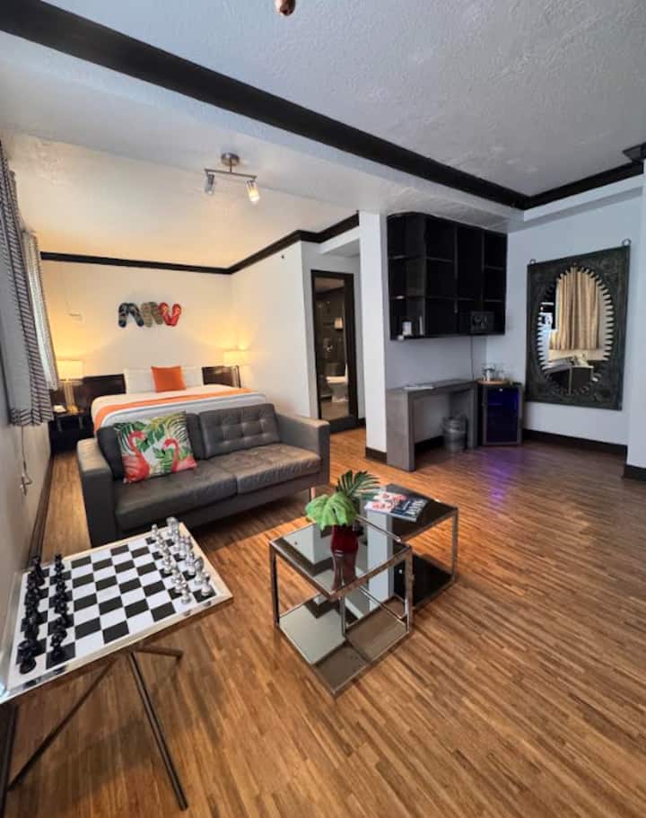 El Hotel Chelsea en Miami Beach es una joya de lujo Art Deco de 1936 que se encuentra en el centro de todo, en Washington Avenue. Disfrute del paisaje de South Beach Miami desde nuestro patio mientras bebe del bar o come algo en nuestro restaurante. Si quieres bañarte en el sol de Miami, estamos a solo 2 cuadras de Ocean Drive y de las arenas de la playa. Para todas sus necesidades de vida nocturna, el Chelsea está a pocos pasos de la mayoría de los clubes nocturnos de South Beach. Este hotel boutique de South Beach ha sido actualizado con detalles de Feng Shui para su comodidad y placer.
