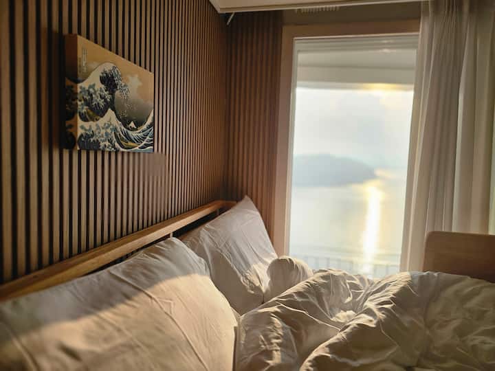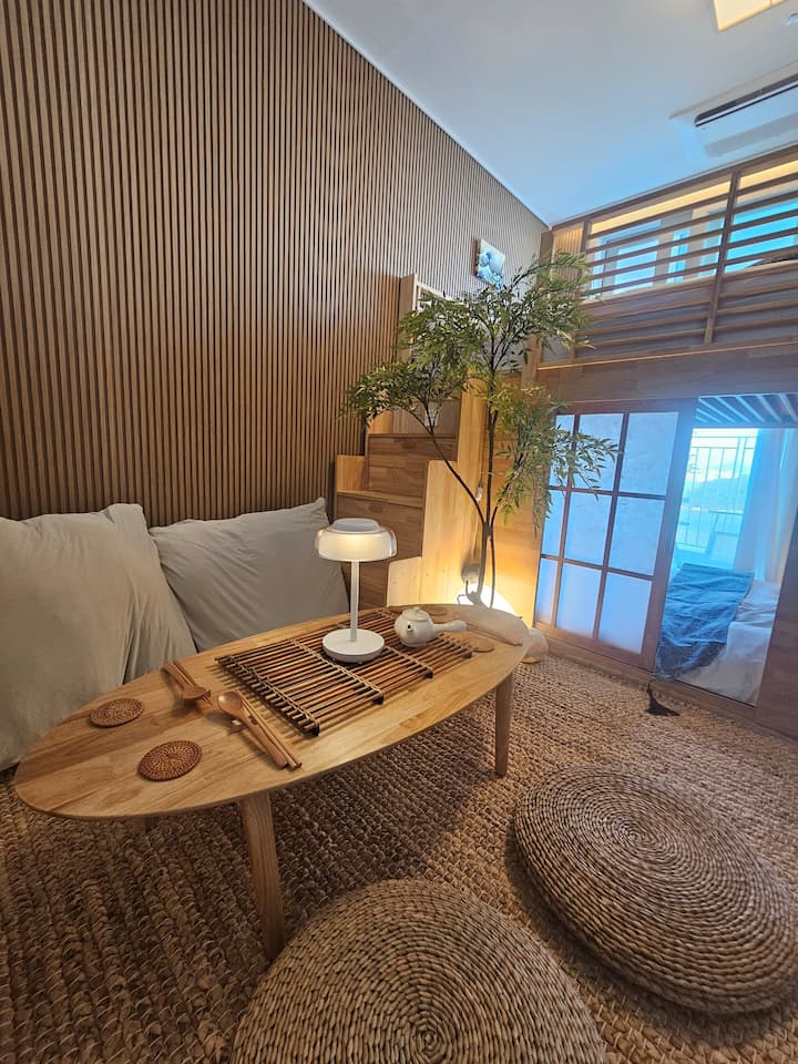 Alojamiento japonés de dos pisos con vista al mar, 2 camas queen (para 4 personas), a 30 minutos del Aeropuerto de Incheon