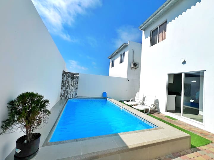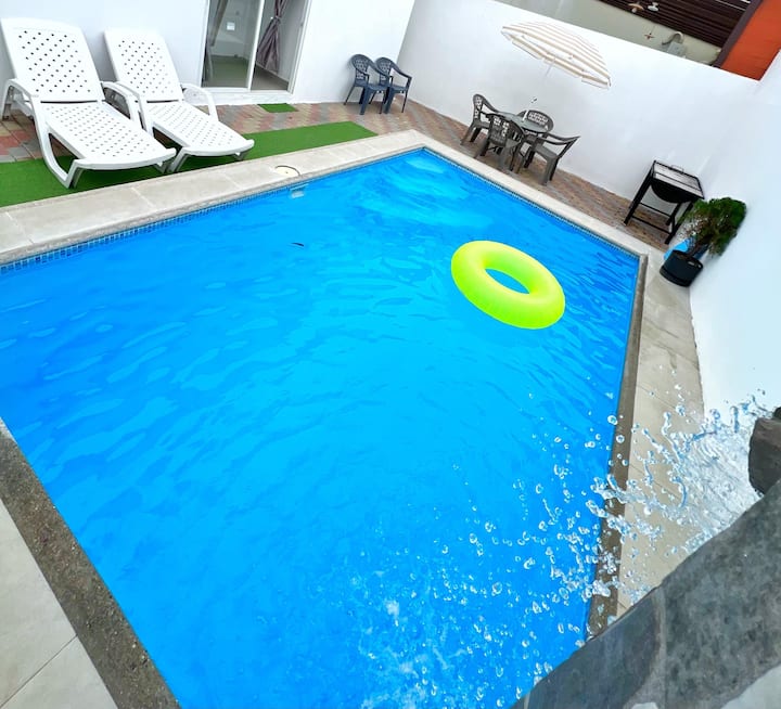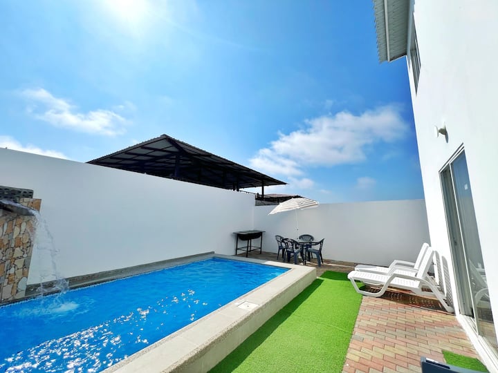 Casa con piscina y parrilla, cerca del mar.