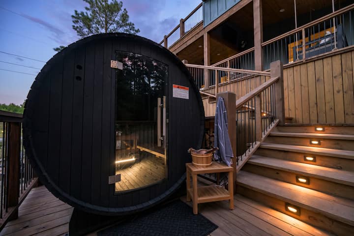 Sauna de barril al aire libre: una buena manera de terminar el día después de un largo día de juego