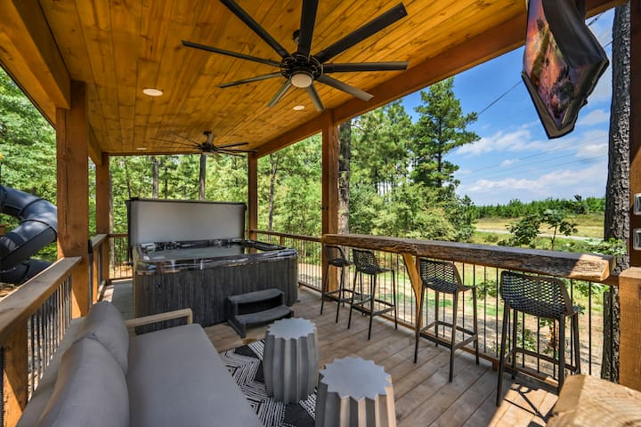 se encuentra cerca de los mejores restaurantes, actividades y servicios del parque. Está a poca distancia en coche de Broken Bow Lake, Beavers Bend State Park, populares rutas de senderismo, restaurantes, cervecerías, bodegas y el centro de Hochatown, y acceso a todas las actividades al aire libre que desees: navegación, senderismo, pesca con mosca, kayak, tirolesa, senderos para todoterreno, paseos a caballo, Cedar Creek Golf Course, Choctaw Landing Casino, minigolf, paseos en helicóptero, minería de oro, paseos en tren, paseos en tren, go-carts y un gran zoológico de mascotas.