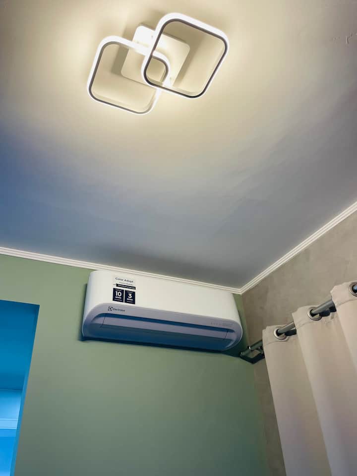 Construido por Alexa, aire acondicionado, wifi, cama tamaño queen (estándar de EE. UU.) y seguridad, tenemos todo lo que necesitas para descansar o trabajar.